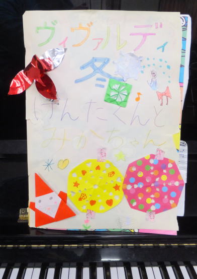 という事で、前回のクリスマス会では、教室で学んでいる生徒達の殆ど全員が絶対音感を持っている・・という事を、クリスマス会にいらした保護者の方やお客様にご披露しましたが、今回は楽典の勉強の成果を少しだけアピールする事にしました。