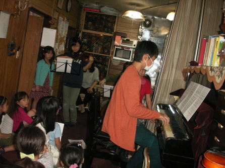 下の写真は、模範演奏、初見大会、おやつtime、楽典、五度圏の時計制作等々の写真です。
