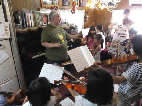 夏休み前の最後のオケ練習 15年7月19日(日) 花園教室 このグループの初めての芦塚先生の指導