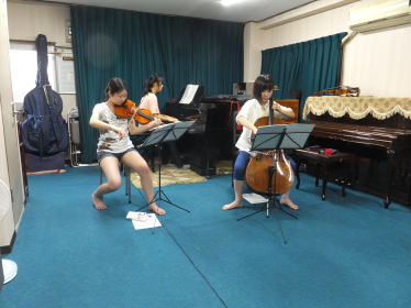 子供達のスイカ割りの最中ですが、検見川教室では芦塚先生の室内楽のレッスンがありました。