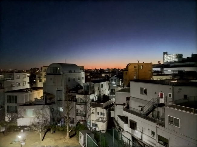 朝のtoiletteに起きたのですが、居間の窓の外には、朝焼けの空が広がっている事に気が付いて、慌てて携帯を手にして、写真を撮ってしまいました。(写真では自動的に明るく補正されるので、実際の映像はもっと真っ暗な中から、血のような赤い光が刺して来るのですよ。毎回、同じ事を書いているのだけど、見たままを写真に残す機能は無いのかね??デジカメでさえも補正してしまって、見たままを撮るのが、難しいのだよな??)