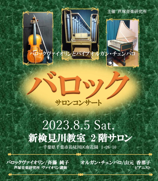 今日はせっかくこのパイプオルガンも聴いていただいていますので、少しこのオルガンについてもご紹介させていただきます。このオルガンは、大きな教会や大ホールなどにあるパイプオルガンとは違って、positive organと言います。芦塚先生が、「本物のPipeorganの音を一般にも聴かせたい」「ワンボックスカーで運べるPipeorganがあったら良いのに」・・ということで、黒田Organというところに設計案を出して、試験的に作ってもらったものです。少人数の弦楽オーケストラや、今回のようにソロ楽器とのアンサンブルを前提に作られた小型のオルガンで、音色もとても柔らかく、このくらいの広さにちょうど良いですね。芦塚先生が設計のアイデアとして、「理論気柱」という概念で、管を閉管にする事で、pipeの長さを半分にしています。それでコンパクトなパイプオルガンが実現されました。実はこれ、3つのパーツに分解できて、持ち運びが出来るようになっています。それでもやはりそれぞれは結構重たいです。つい二年半前にも教室のお引越しがあり、このオルガンも自分たちで担いでここに運びました。楽器だけは引越し業者さんにはたのめませんのでね・・・。今回は、曲のイメージに合わせて、オルガンとチェンバロを弾き分けることにしました。次の曲はオルガンの伴奏でお聞きください。