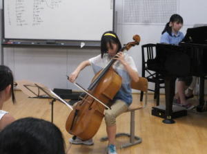 夏休みに自分達で自主練習が出来るように、芦塚先生の花園の自治会館のlecturelessonの風景をYou Tubeの動画にuploadしています。弦楽器の奏法では弓の微妙な使い方が上級生になればなる程、難しくなって行きます。
