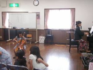 超ハプニングの一部の開始です。Goltermann のEtudecaprice森真雅ちゃんとTelemannのgavotteを長峰悠馬君新飯田千尋ちゃんのYoji