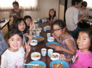 みんなでお昼です。お姉さん達だけでなく、お母様達も配膳のお手伝いに駆けつけていただきました。