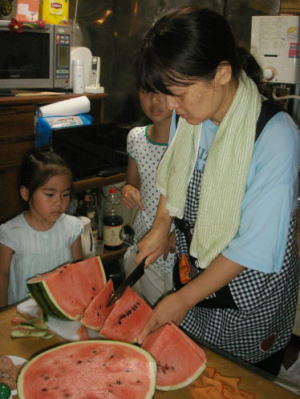 スイカ割りのスイカは、牧野先生がちゃんと小さく切ってくださいました。
