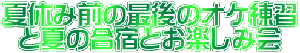 今は、先生の数も少なくなったし、子供達も忙しくなって、合宿のお手伝いですら、学校の合間に駆けつけるようになってきたので、先生達の体力勝負になってきました。