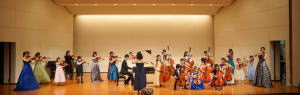 全体合奏の曲は芦塚先生の作曲ですが、violinやcelloの演奏技術が、初歩の子供達とベテランのお姉さん、お兄さん達の人達が一緒に演奏出来るように演奏技術のレベルの差をつけて作曲されているのです。