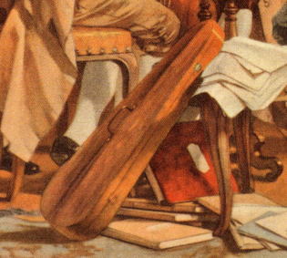 この絵はハイドンのクァルテットの練習風景を描いた有名な絵ですが、この一番前に置かれているヴァイオリン・ケースをズームして見てみましょう。